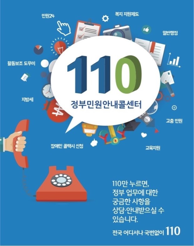 정부민원 안내 콜센터 110 은 365일 24시간 무료로 운영되며